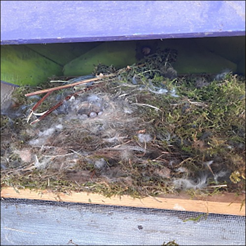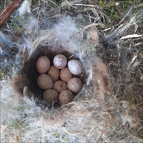 Félicitations à Isa et Claude, les 2 premières réponses : il s’agit en effet d’un nid et d’oeufs de mésange charbonnière.